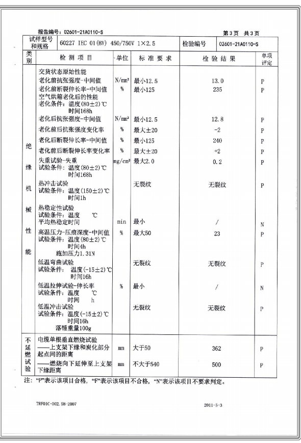 聚氯乙烯乙烯絕緣電纜電線 國家強(qiáng)制性產(chǎn)品試驗認(rèn)證報告