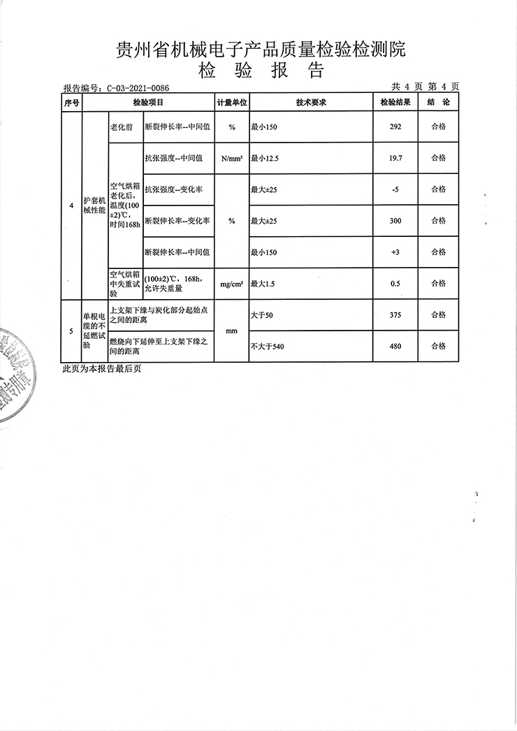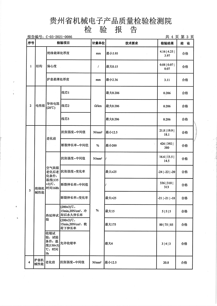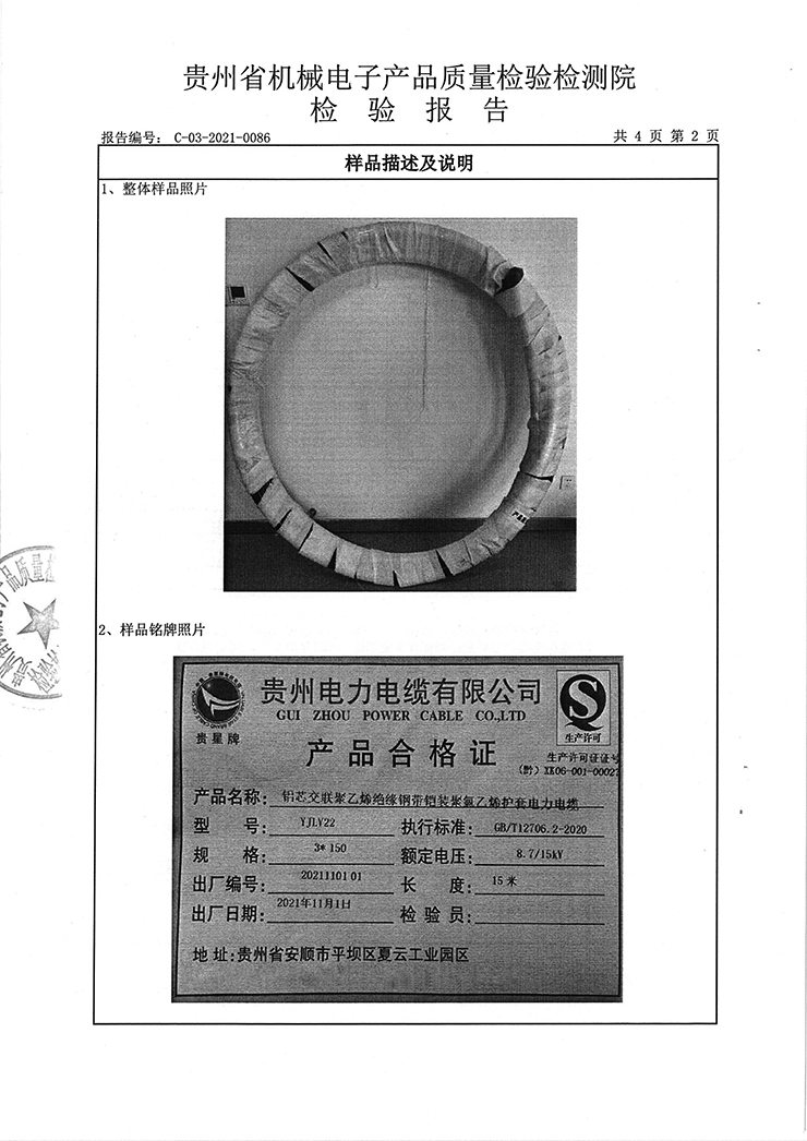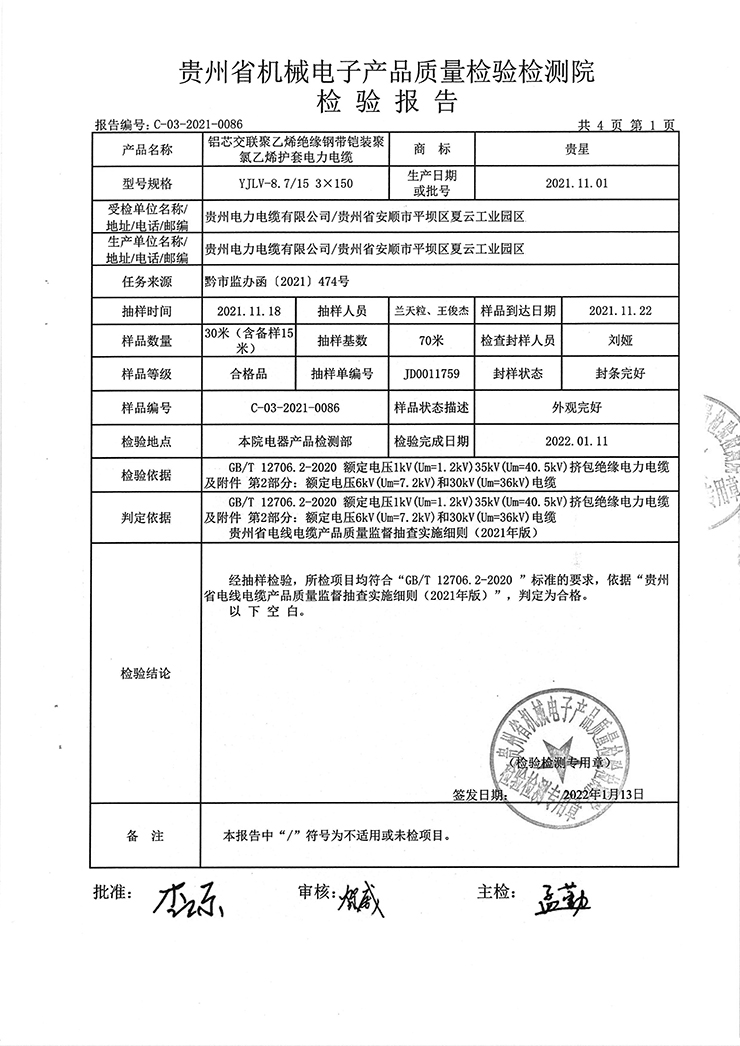 鋁芯交聯(lián)聚乙烯絕緣鋼帶鎧裝聚氯乙烯護(hù)套電力電纜 檢驗(yàn)報(bào)告